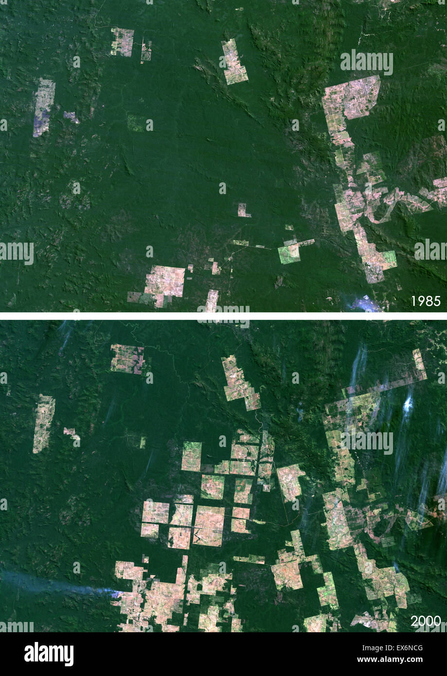 Satellite View Of Deforestation In Para Brazil In 1992 And 2000 This Before And After Image Shows Deforestation Impact Over Stock Photo Alamy